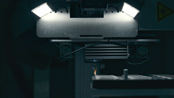 每台打印机配备了一个振镜系统,包含 6 束激光,每束光如同一支细笔,通过振镜系统引导,在粉末表面融化出一层零件的横截面。