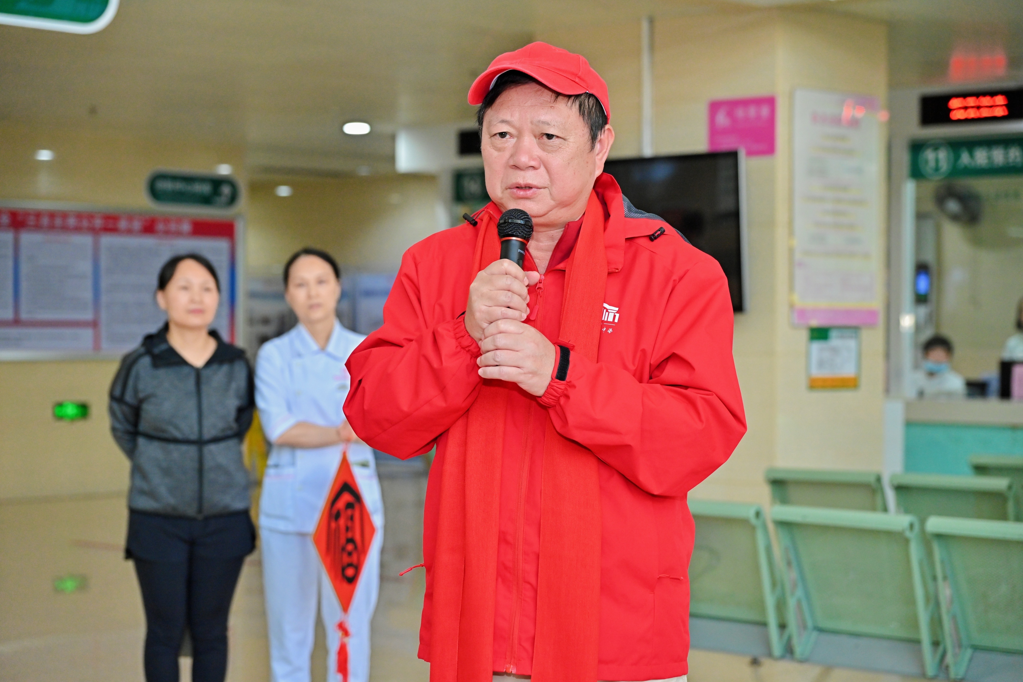 暨南大学校董梁仲景代表挥春艺术家致辞。他动情地说:“作为暨南人,能回到母校医院为白衣天使和病友们写福送福,是一份特殊的荣幸。愿这一张张红纸、一个个福字,化作对生命守护者的敬意,也化作对早日康复的祈愿。”