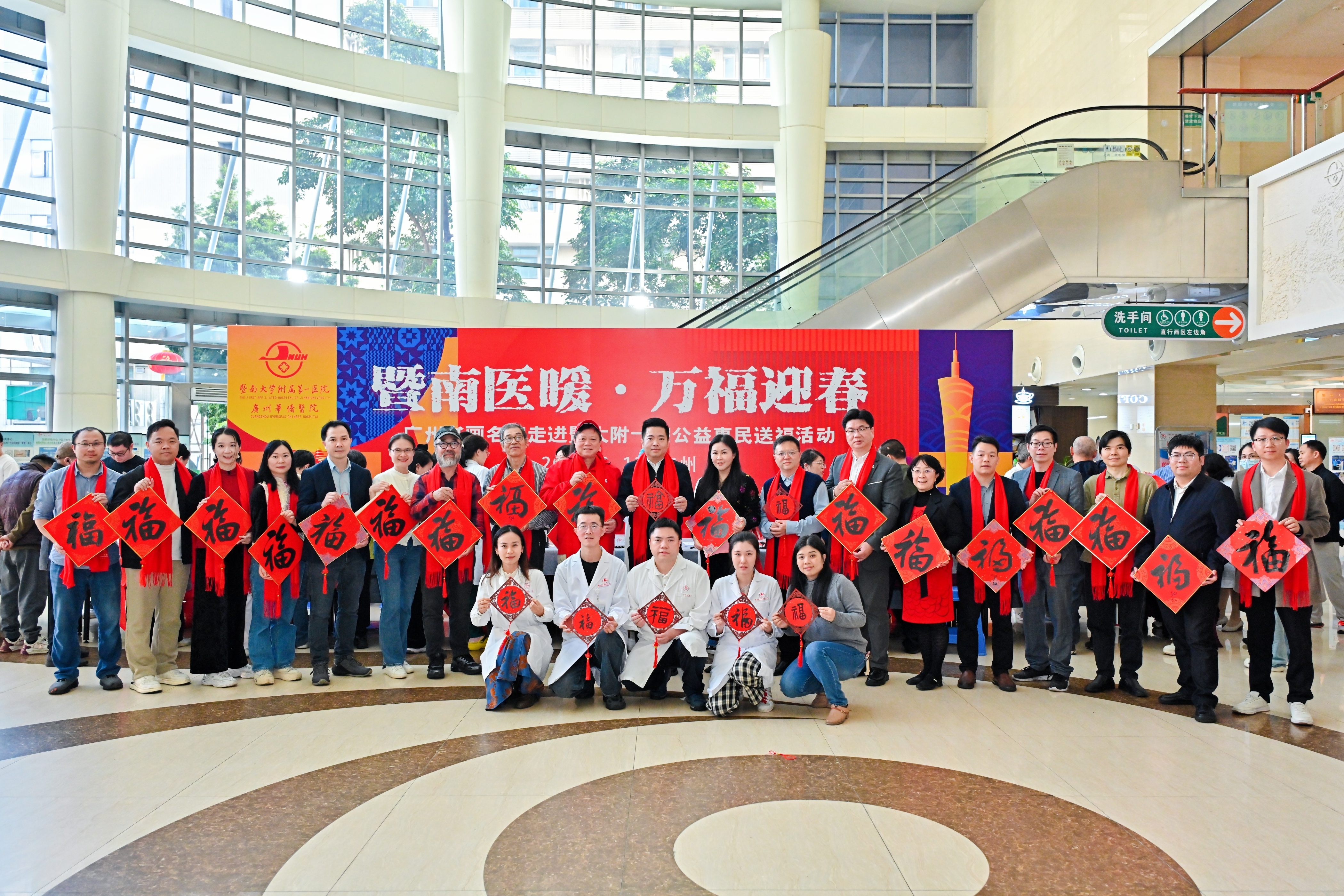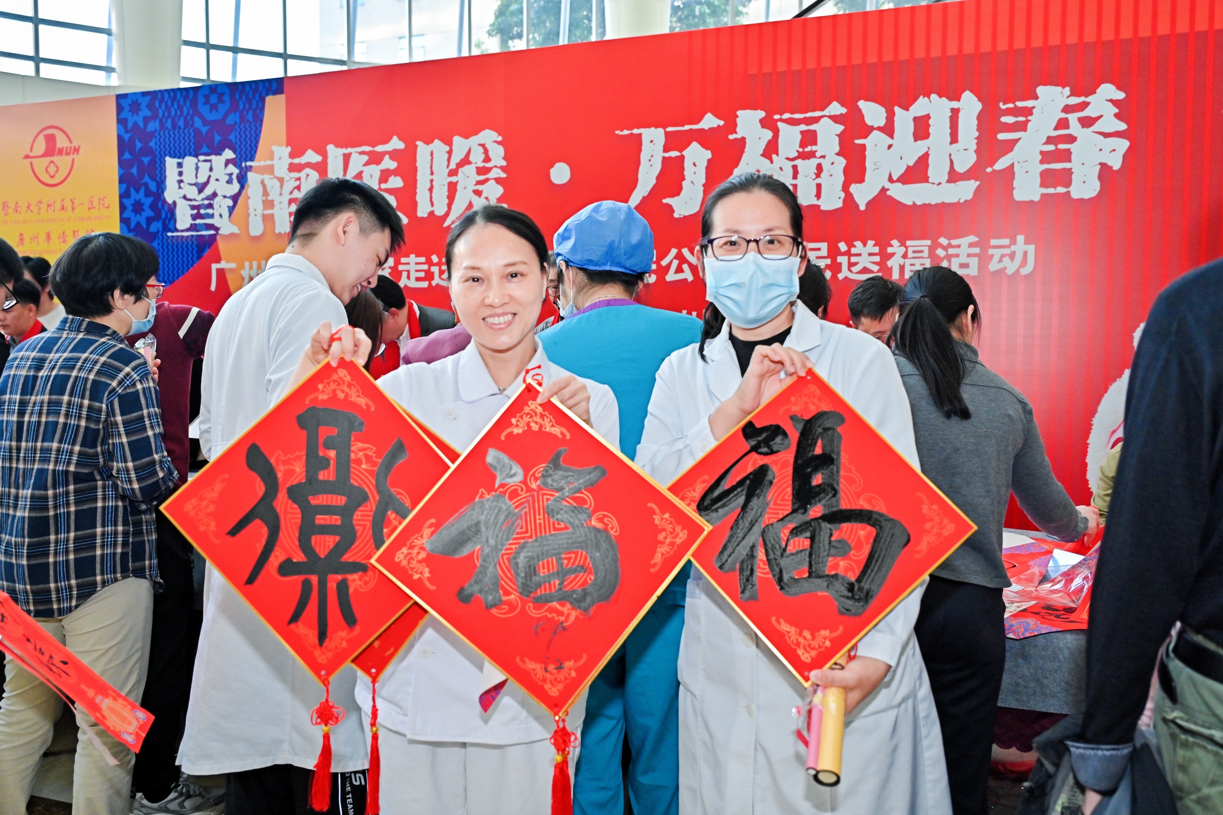 本次活动是“城市合伙·万福迎春”系列公益挥春活动的收官之站,也是唯一一场走进医疗卫生机构的专场。活动以“暨南医暖·万福迎春”为主题,旨在以笔墨传递祝福,以艺术抚慰心灵,向春节期间坚守岗位的医护工作者致敬,为广大患者及家属送去新春的温暖与希望。