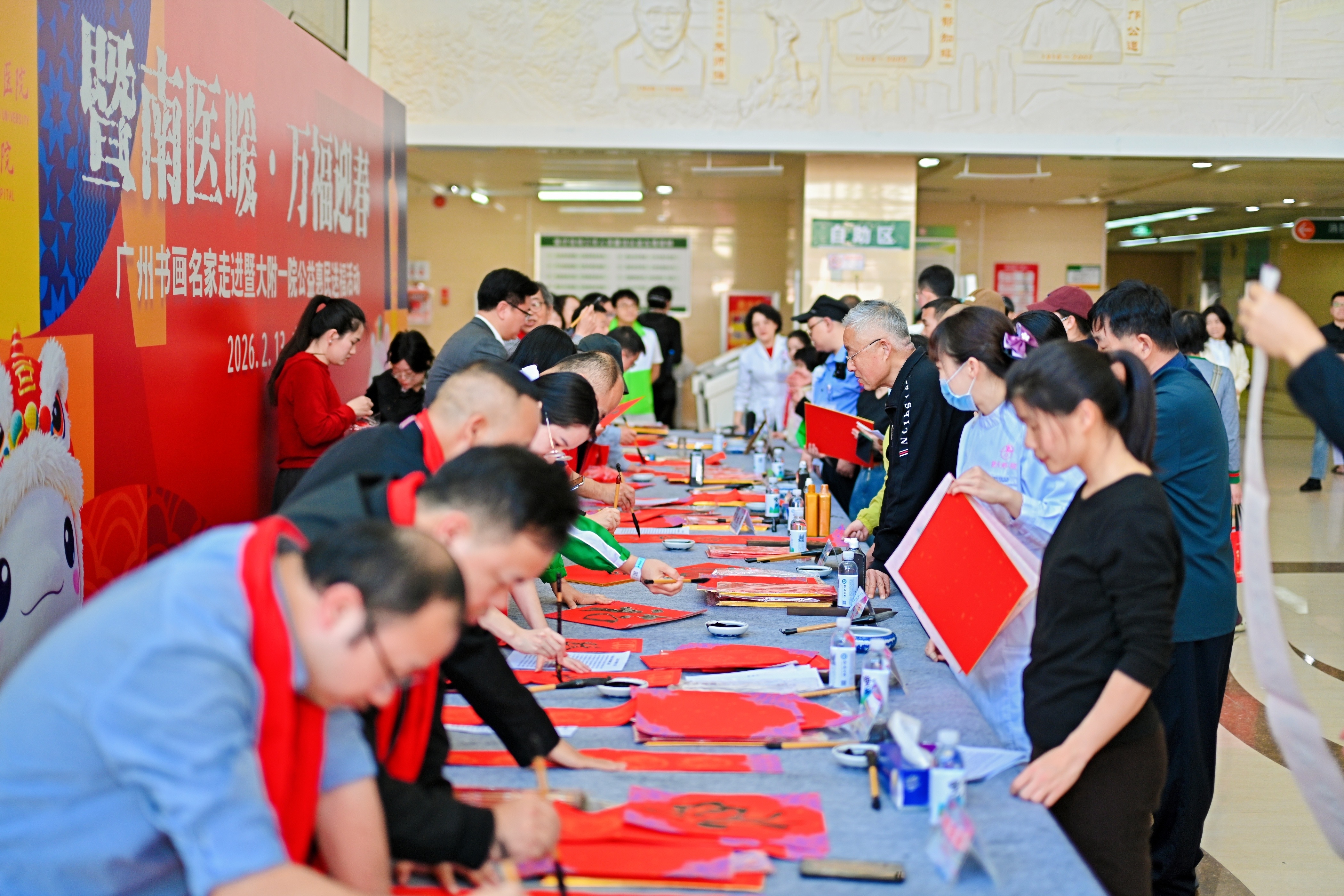 活动负责人、广州市青年书法家协会主席麦荣在忙碌的间隙接受了采访。他表示:“‘城市合伙·万福迎春’系列活动走过4站,但今天这一站,最让我动容。看到穿手术服的护士笑着举起福字,看到坐轮椅的患者在队伍里静静等候,看到吊瓶架旁那双手接过春联时微微颤抖——我才真正明白,笔墨的意义不只在于书写,更在于连接。我们写的是字,更是祝福;送的是“福”,更是城市对每一个普通人的惦念。收官之站选在医院,就是想告诉所有坚守一线的医护人员和正在与疾病抗争的患者:你们并不孤单,这座城市有人在牵挂你们,都在为你们祈福。
