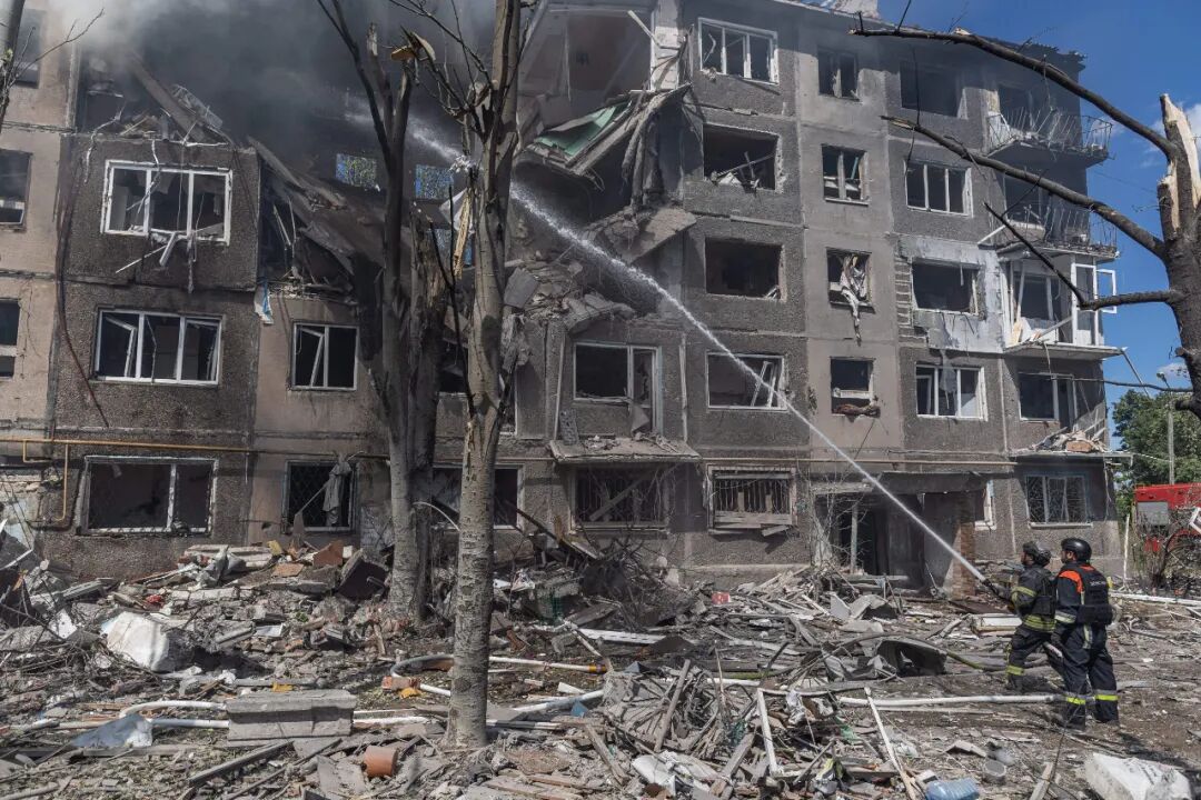 顿巴斯地区遇袭的居民楼。图源:GJ